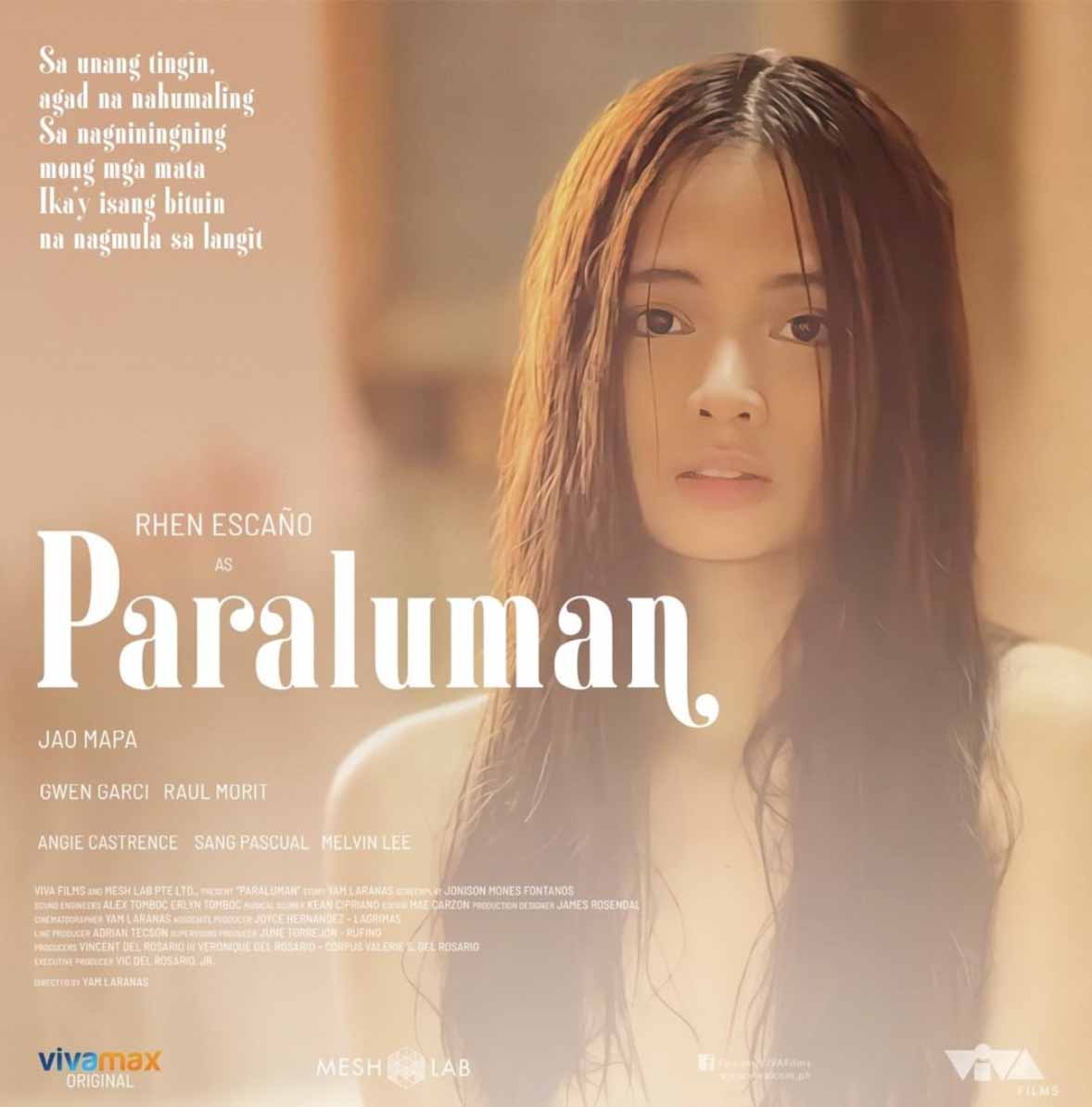 For PARALUMAN, Direk Yam chose to work with Rhen Escaño who made a mark with her performances in the movies “Adan” and “Untrue”, and 90s heartthrob and notable actor Jao Mapa for the roles of Mia and Peter respectively. This is the first on screen team-up of Rhen Escaño and Jao Mapa, that’s why their on-screen chemistry is something to look forward to.