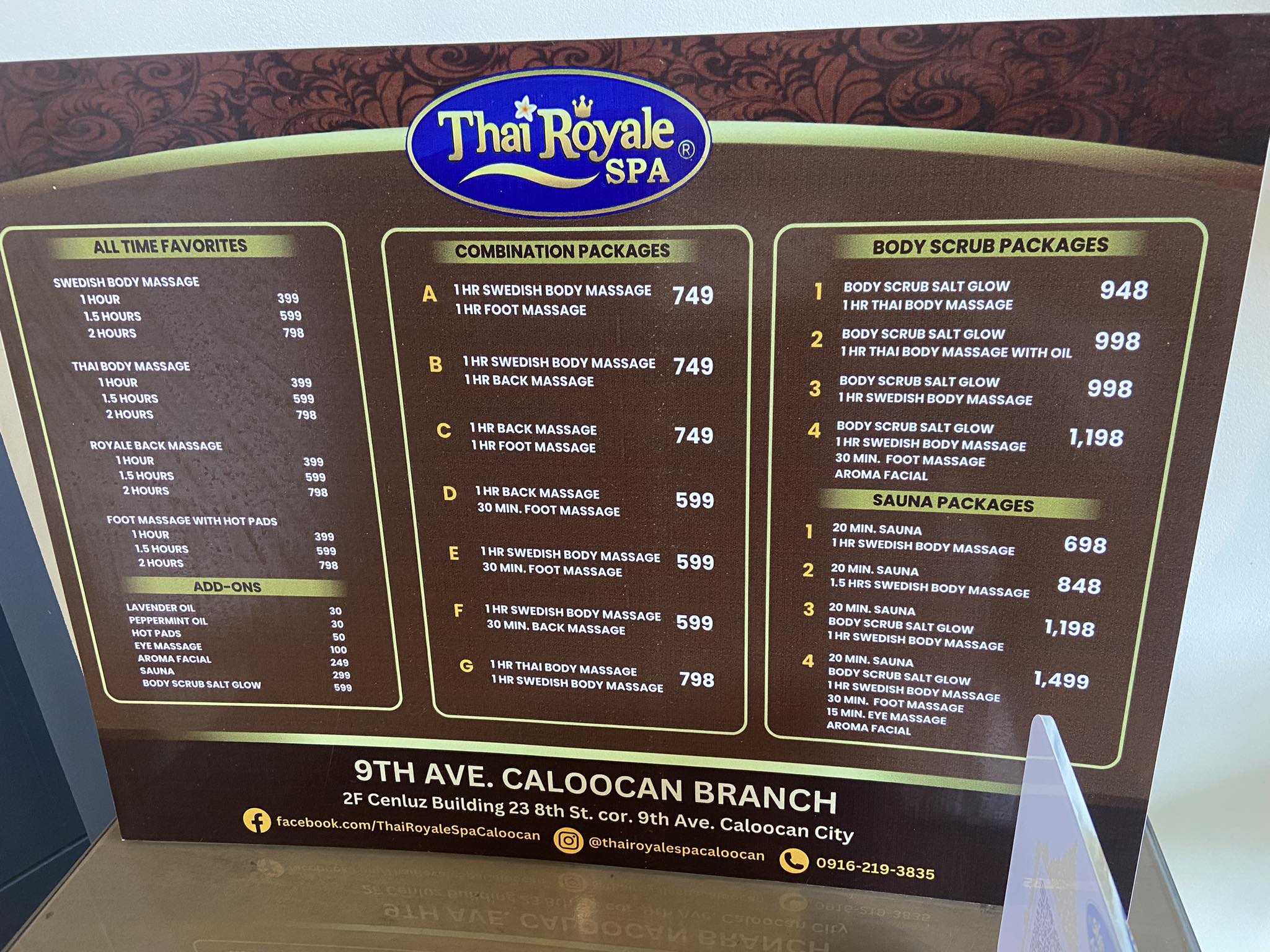 - Facebook: www.facebook.com/thairoyalespa