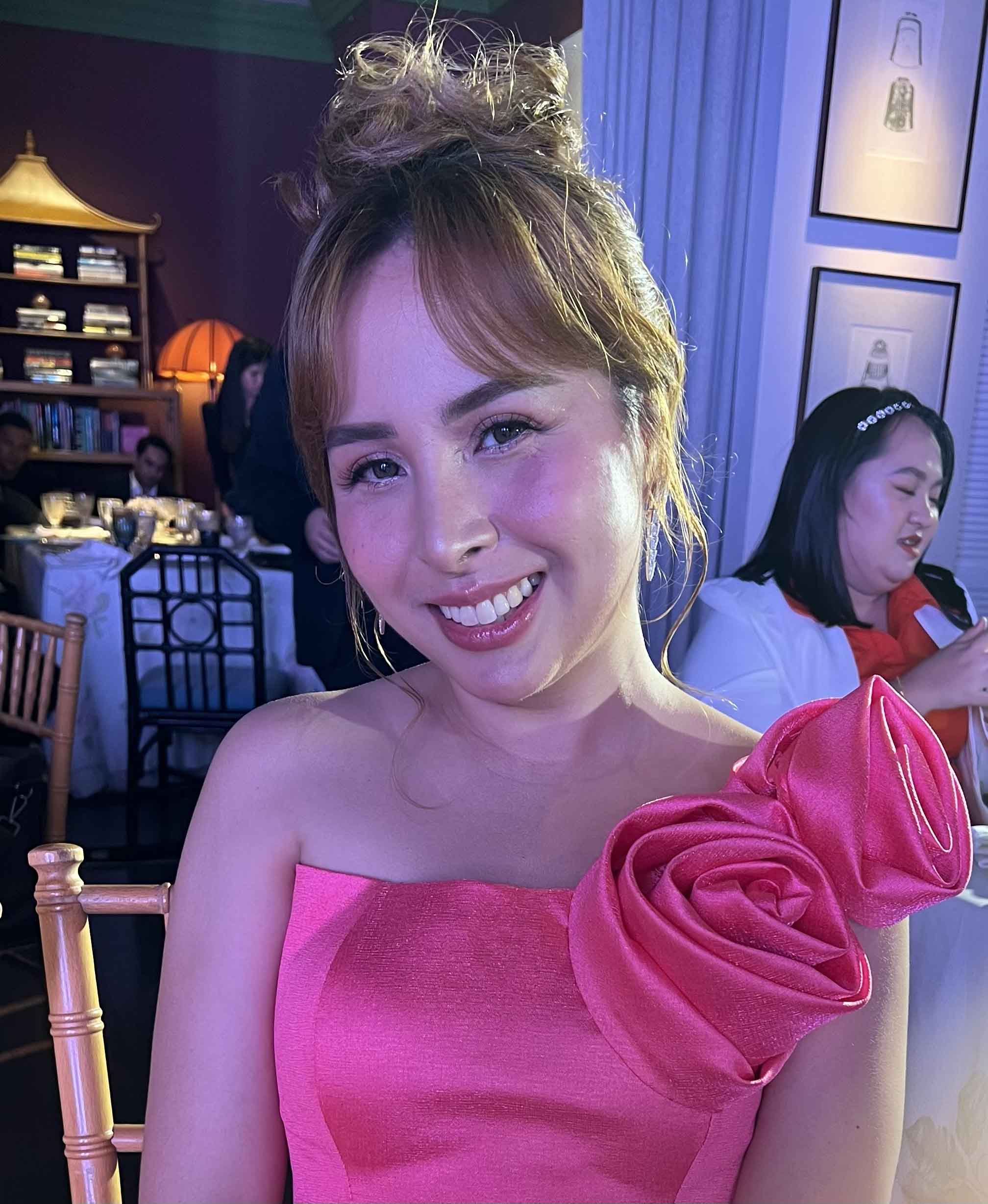 It was a joy to see how many resellers and distributors Dear Face has been helping through the years. And it is empowering to know that the successful brand is led by female CEO Jonah Sison-Ramos. During her introduction to the guests last night, the registered nurse-slash-entrepreneur teased, “I’m really overwhelmed by the fast success of the brand. It’s a very big deal. Filipinos are now embracing beauty through drinking collagen or beauty supplements. Tonight, we’re going to launch our new face for Beauty Milk. Beauty Milk is our flagship product. She’s a great choice for the brand.” Just a few minutes after, Filipino-British actress Bela was formally introduced.