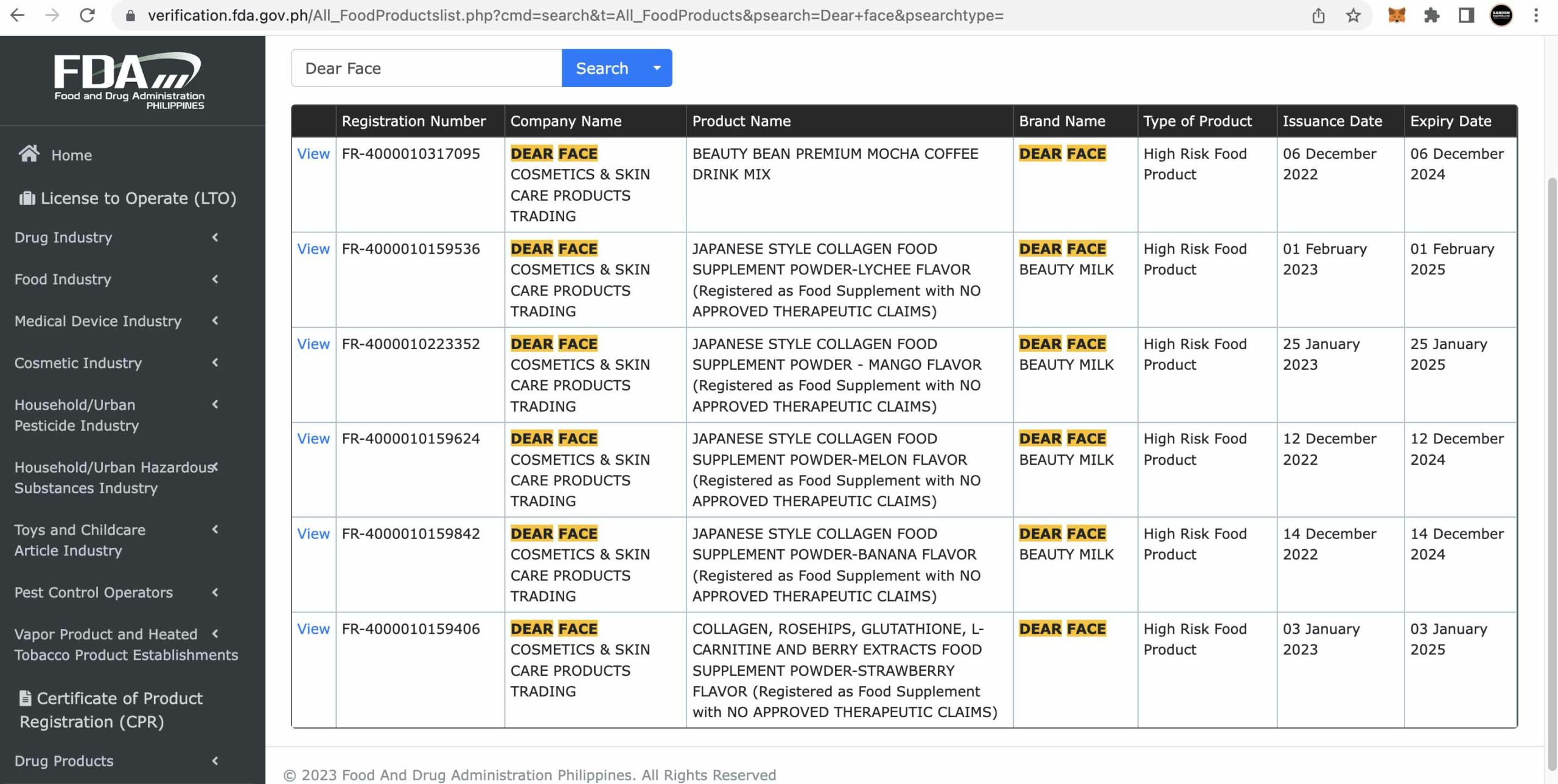 I saw a lot of intriguing and convincing rave reviews on short-form video platform TikTok posted by regular citizens swearing by the product’s effectiveness. With a lot of products cropping up online, I had to be careful and even checked the FDA verification portal to check the brand’s registration. True enough, as promoted, Dear Face is FDA-approved. Look, here’s a screenshot of the FDA registration: