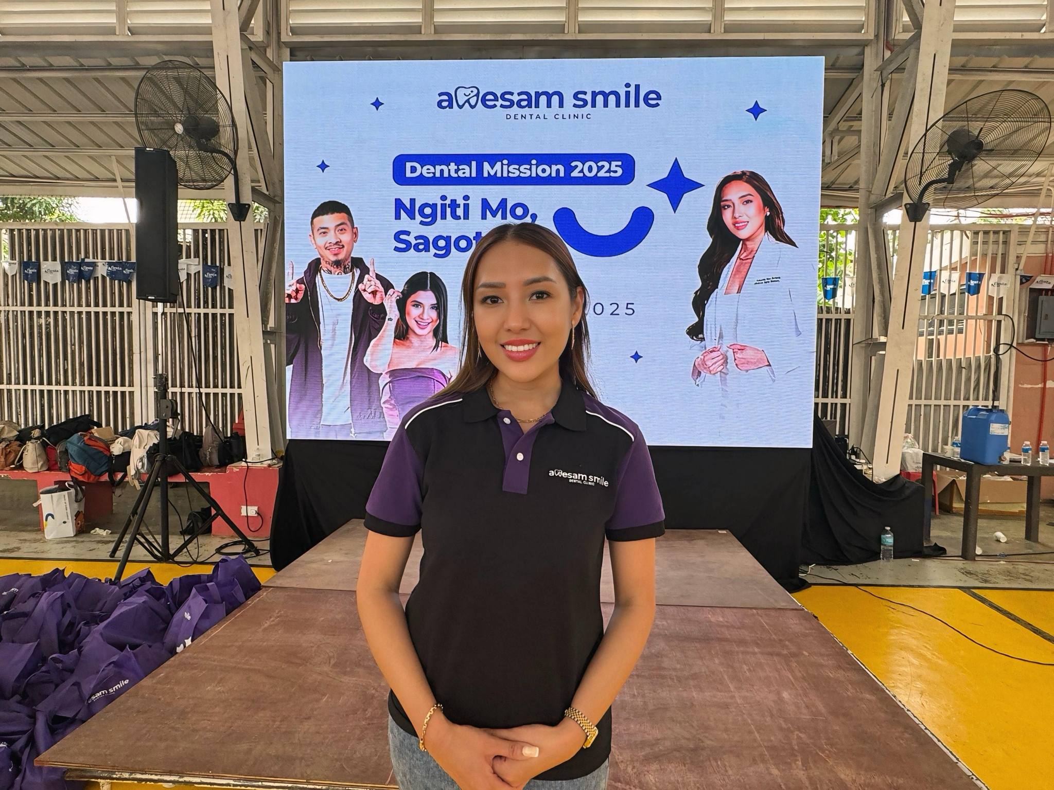 Last Thursday, the Iwahig covered court in Marikina was filled with a sense of purpose as purple packs of groceries and rice bags were neatly arranged, ready for distribution. Volunteers moved efficiently, helping recipients of a dental mission in an orderly manner. It was an atmosphere of genuine service. Among those making a difference was Dr. Samantha Bernardo, CEO and head dentist of Awesam Smile Dental Clinic.