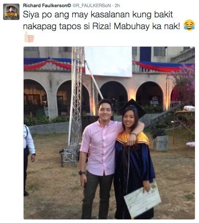 Earlier on Eat Bulaga, the Pambansang Bae Alden Richards congratulated his younger sister Riza Faulkerson (tagged by fans as “Sister Bae”) on her graduation from Colegio de San Juan de Letran (Calamba, Laguna) today. Riza graduated with a degree in Bachelor of Science in Business Administration, major in Human Resource Development Management (BSBA-HRDM).