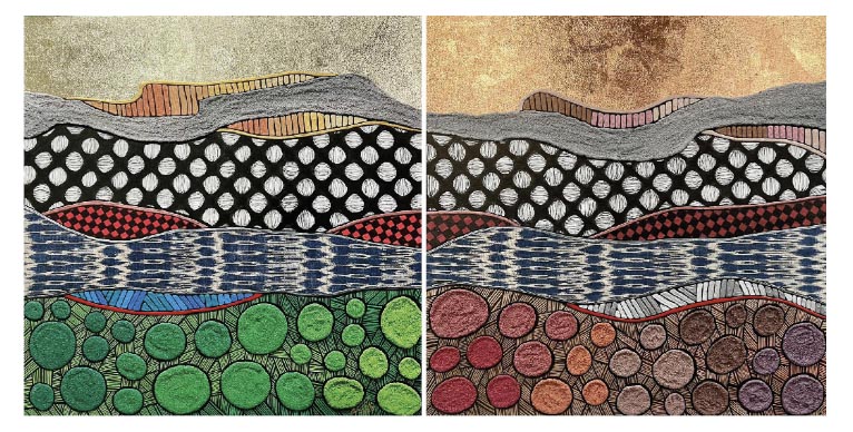To add depth and texture to the pieces, the artist incorporates local weaves, grounding them in their Mindanaoan culture. T’nalak and Inabel are used to represent the people and their traditions.