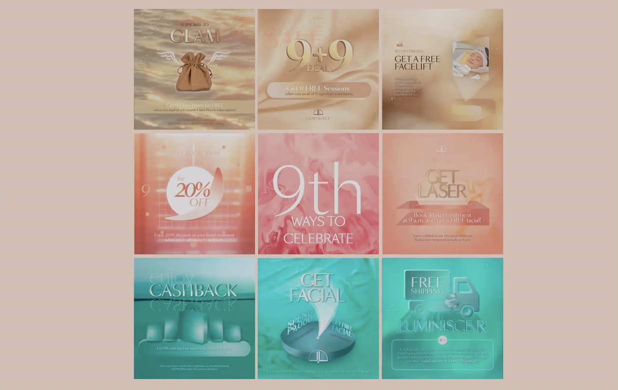 To the nines with Luminisce! The Luminisce Grand 9, 9-Day Anniversary Flash Sale is happening from October 8 to 17, 2021. For 9 days, get 9 exciting freebies or offers when you avail of either 9 signature treatments, 9 products, or anything related to 9.