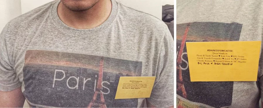 I also promised that I’ll be wearing the names (printed on badges) of those who helped me in my donation drive during the dance class: