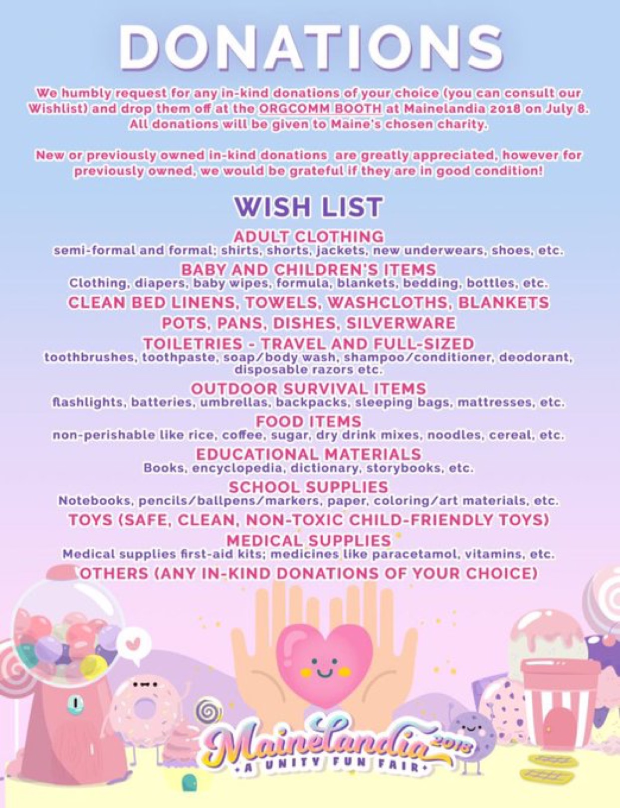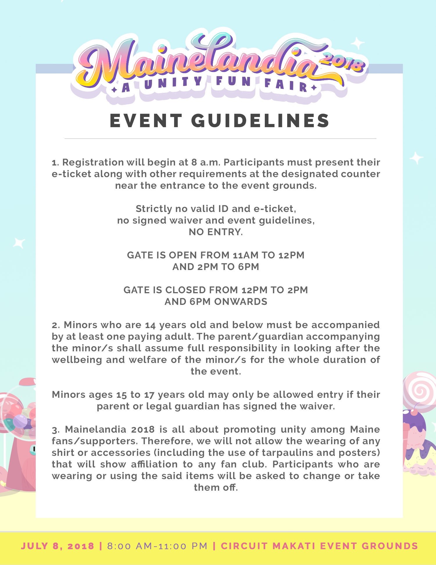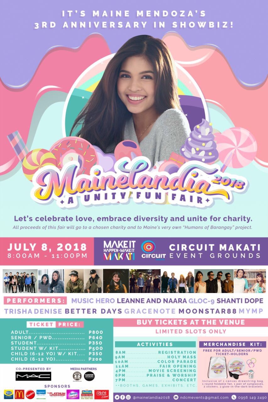 Now, on her third anniversary in the entertainment industry, Maine’s avid fans aim to break walls and unify all her supporters in a whole-day fun fair titled MAINELANDIA 2018. The Candyland-themed event will offer tons of activities and live performances on the day itself. What makes it more special is that all proceeds will benefit a chosen charity and Maine’s Humans of Barangay project. Check out all the details below.