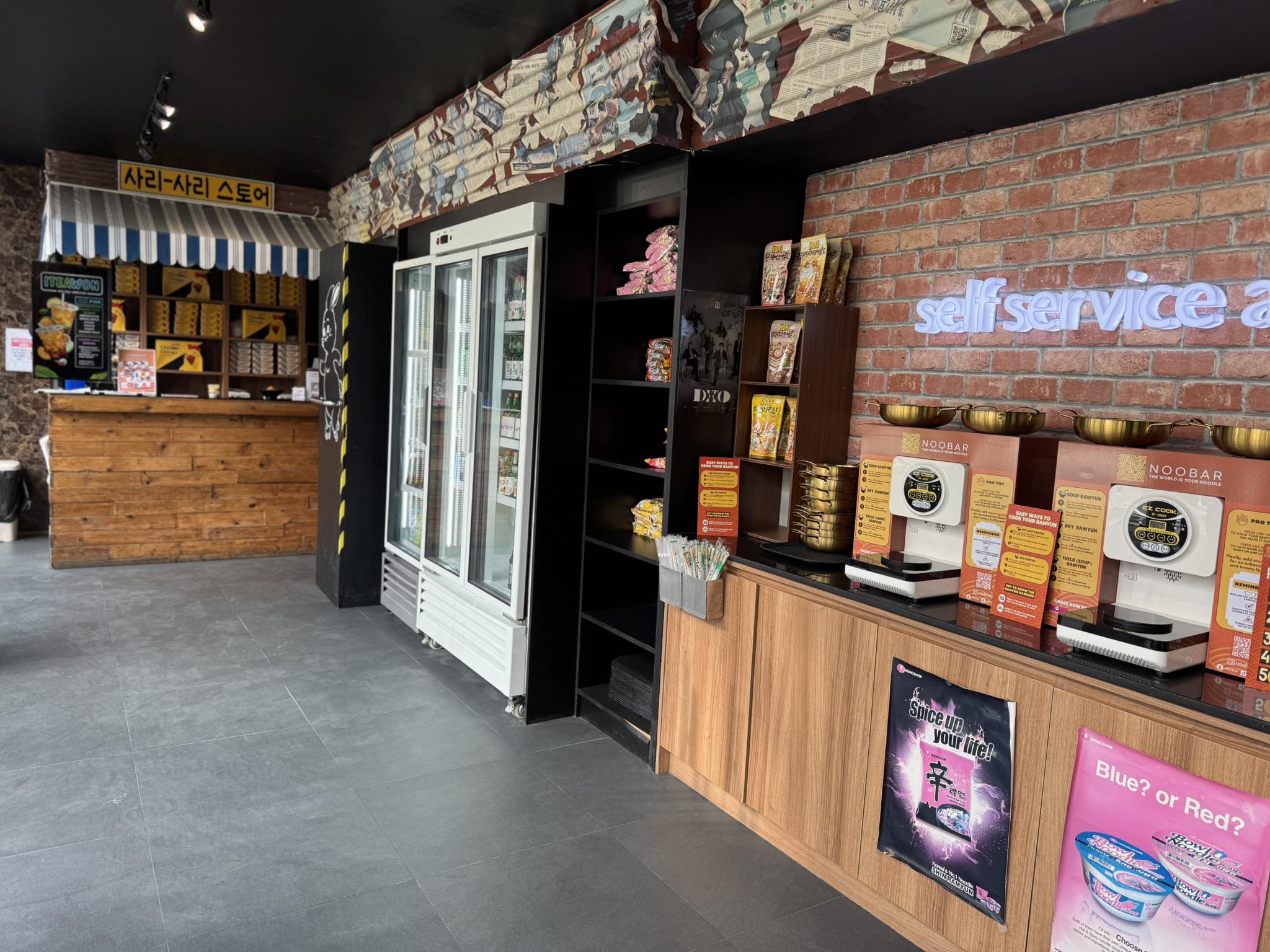 The whole place had a cozy, laid-back vibe, and what made it even more exciting was the hidden secret door leading to Odd Seoul, a party place that comes alive at night. How cool is that? If that wasn’t enough, Chicken Chingu even has a noodle bar where you can find different brands of authentic Korean instant noodles to complete your dining experience.