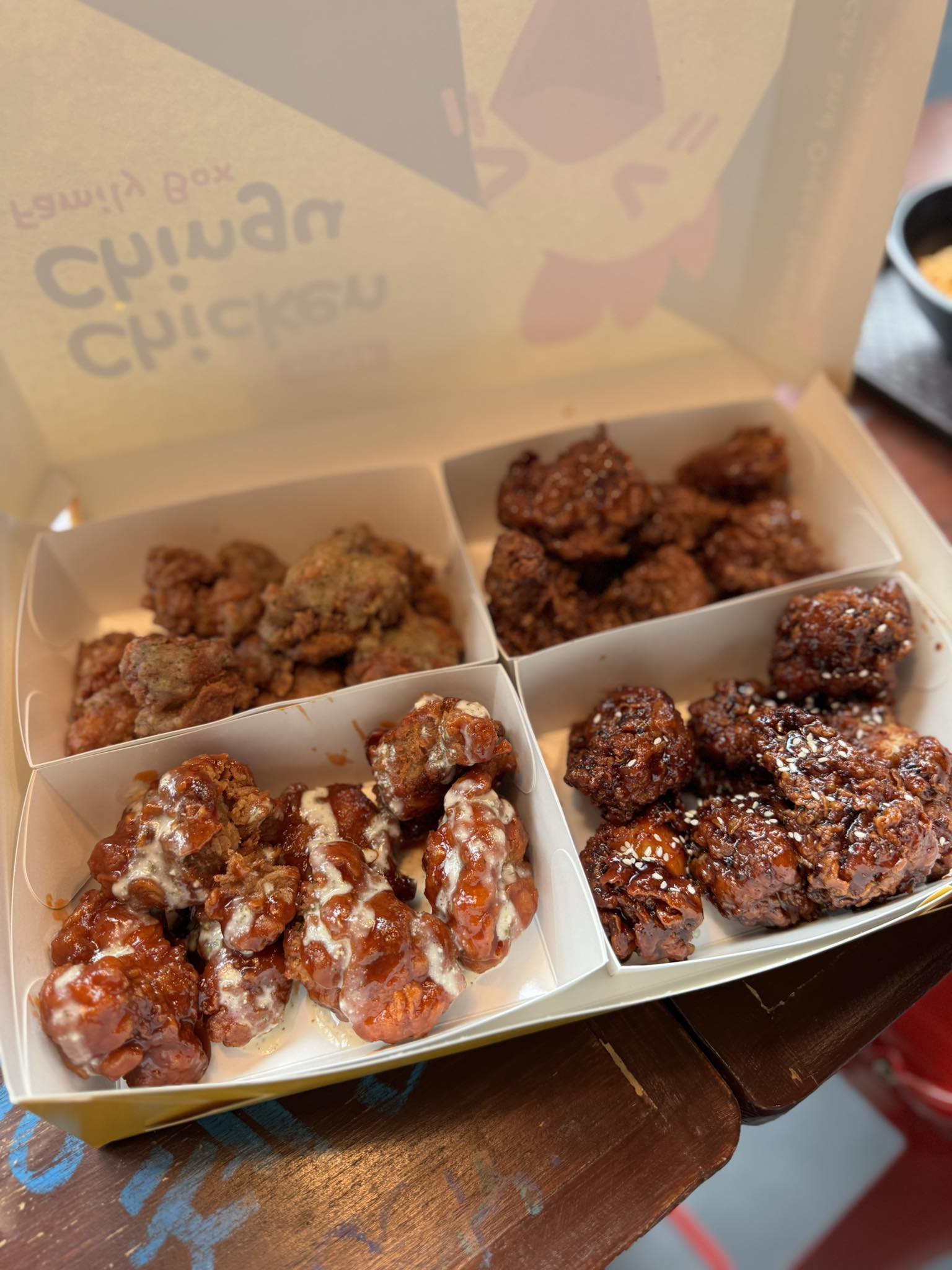 The moment I stepped inside Chicken Chingu’s Quezon City branch, I was greeted by the warmest and friendliest staff—a little touch that instantly made the experience feel even more authentic. They welcomed me with a hearty family meal featuring two dips and four different flavors of their signature boneless Korean fried chicken. Each bite was a burst of bold, well-marinated flavors that had me reaching for more before I even finished chewing.