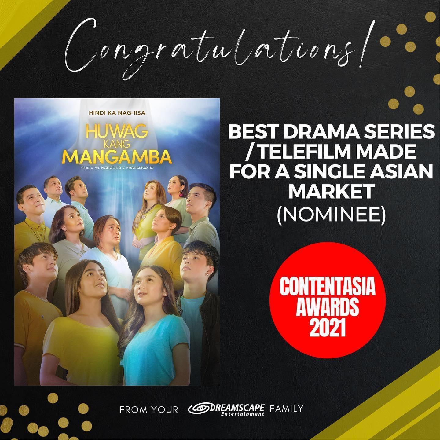 ABS-CBN’s hit inspirational teleserye “Huwag Kang Mangamba” has been nominated at the ContentAsia Awards 2021, competing against four other shows in the region for Best Drama Series/Telefilm made for a Single Asian Market.