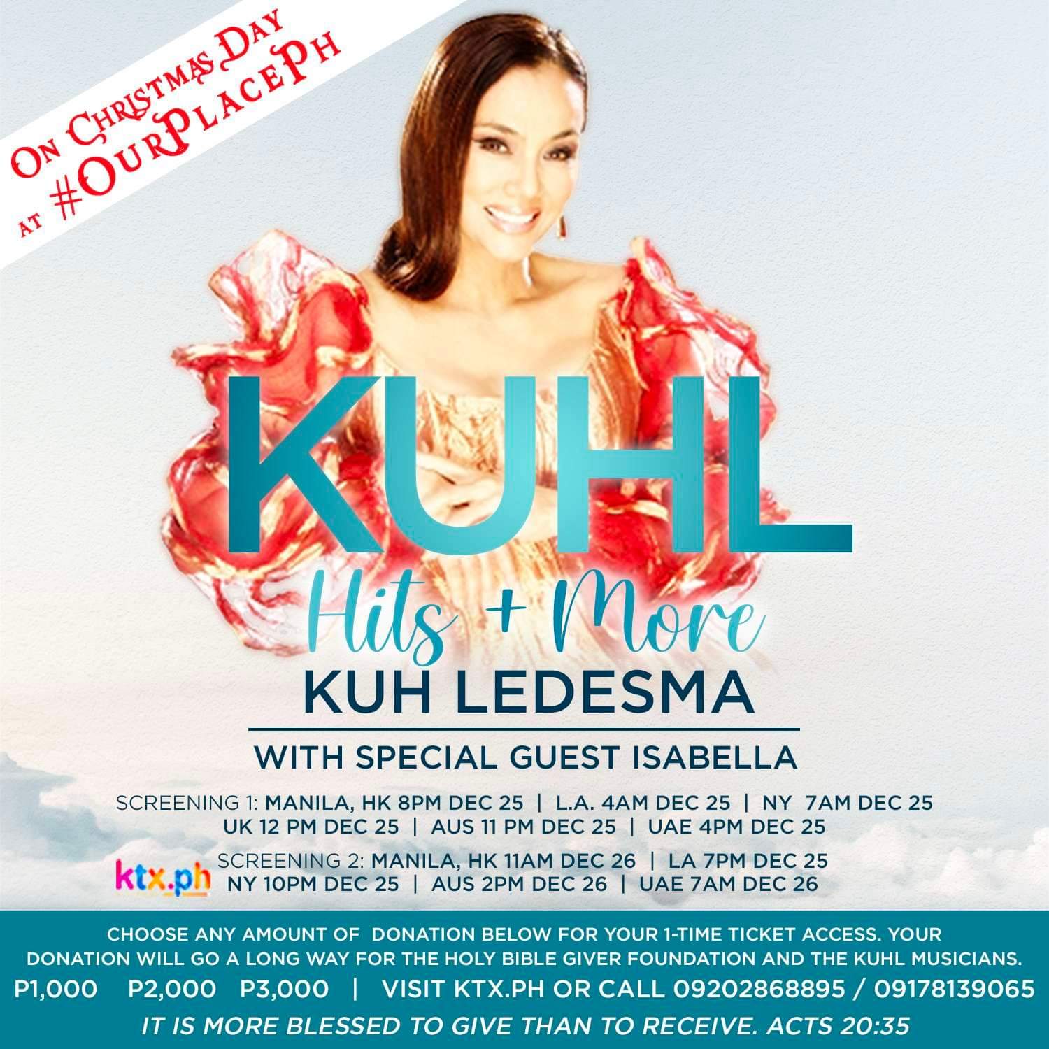 “KUHL Hits + More,” a full benefit online concert, aims to help Kuh’s session musicians who are displaced during this pandemic. As we all know, the entertainment industry is one of the hardest hit industries by the pandemic. Putting up an online concert for the benefit of Kuh’s session musicians who have been with her through the years is Kuh’s way of showing her gratitude and loyalty to these musicians she considers family. This concert is a great way to help them get a head start financially in the coming year.