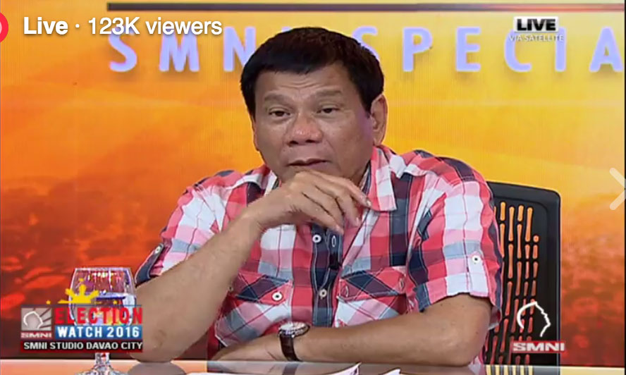 On SMNI Davao City TV Channel, the leading presidential candidate Rody Duterte is speaking live about his plans if elected as the Republic of the Philippines’ new president.