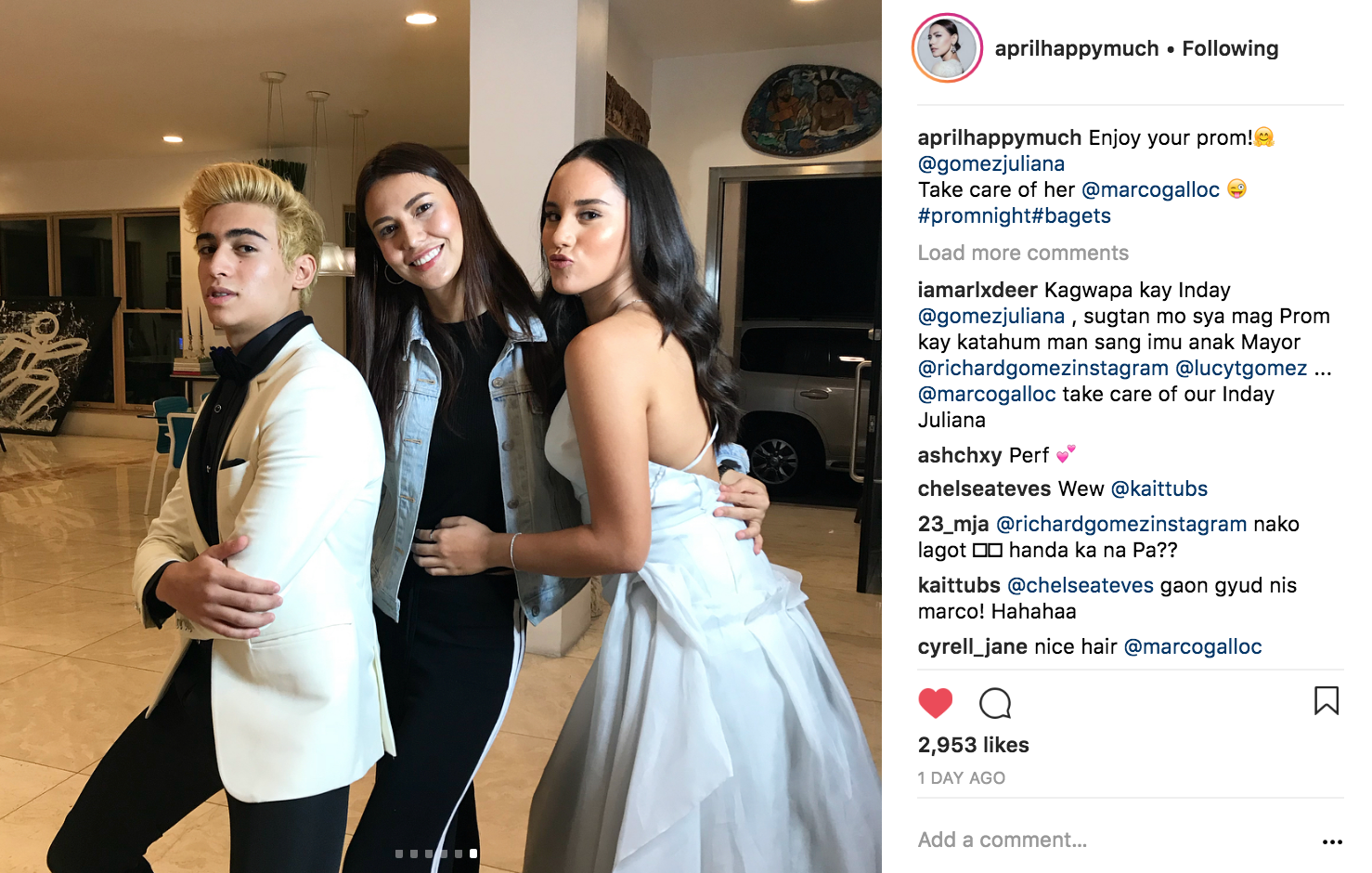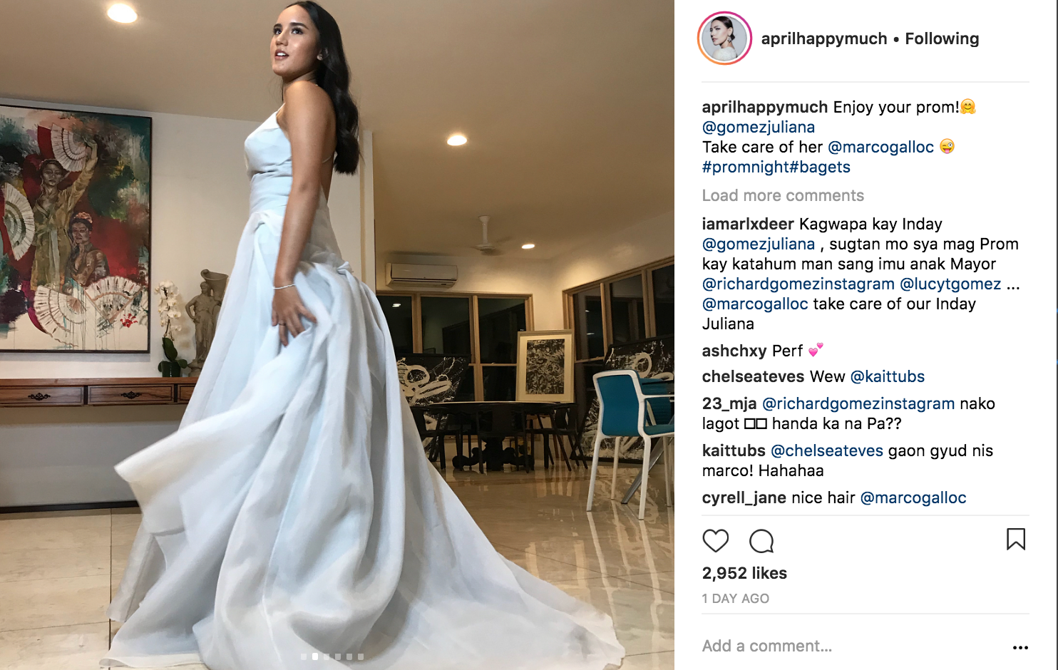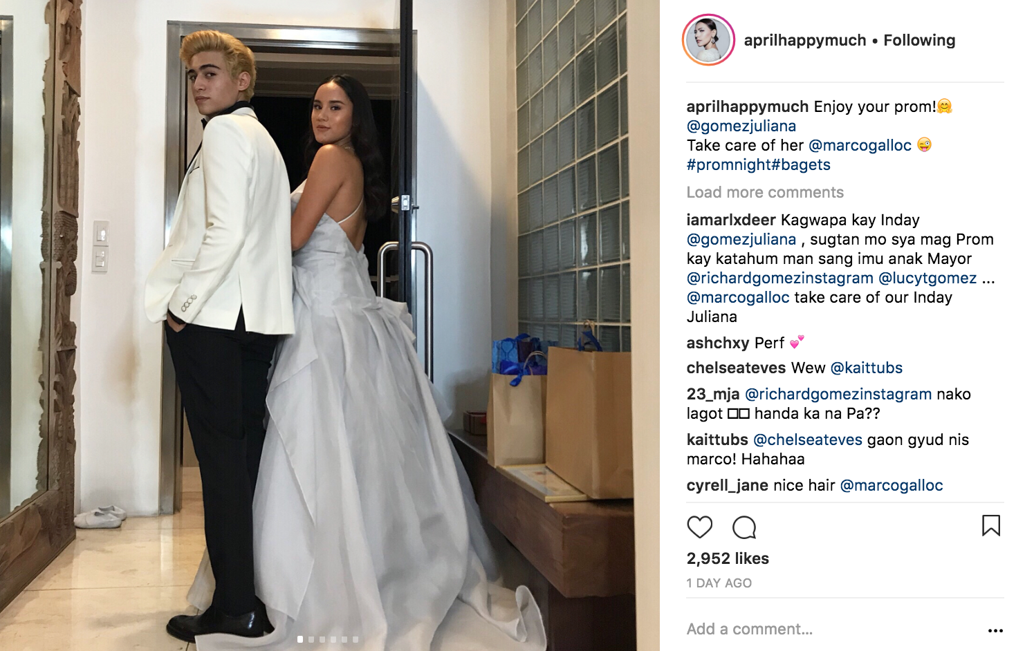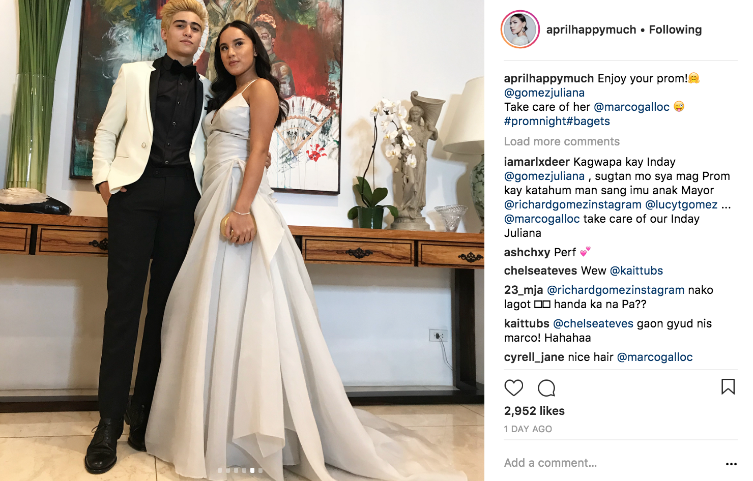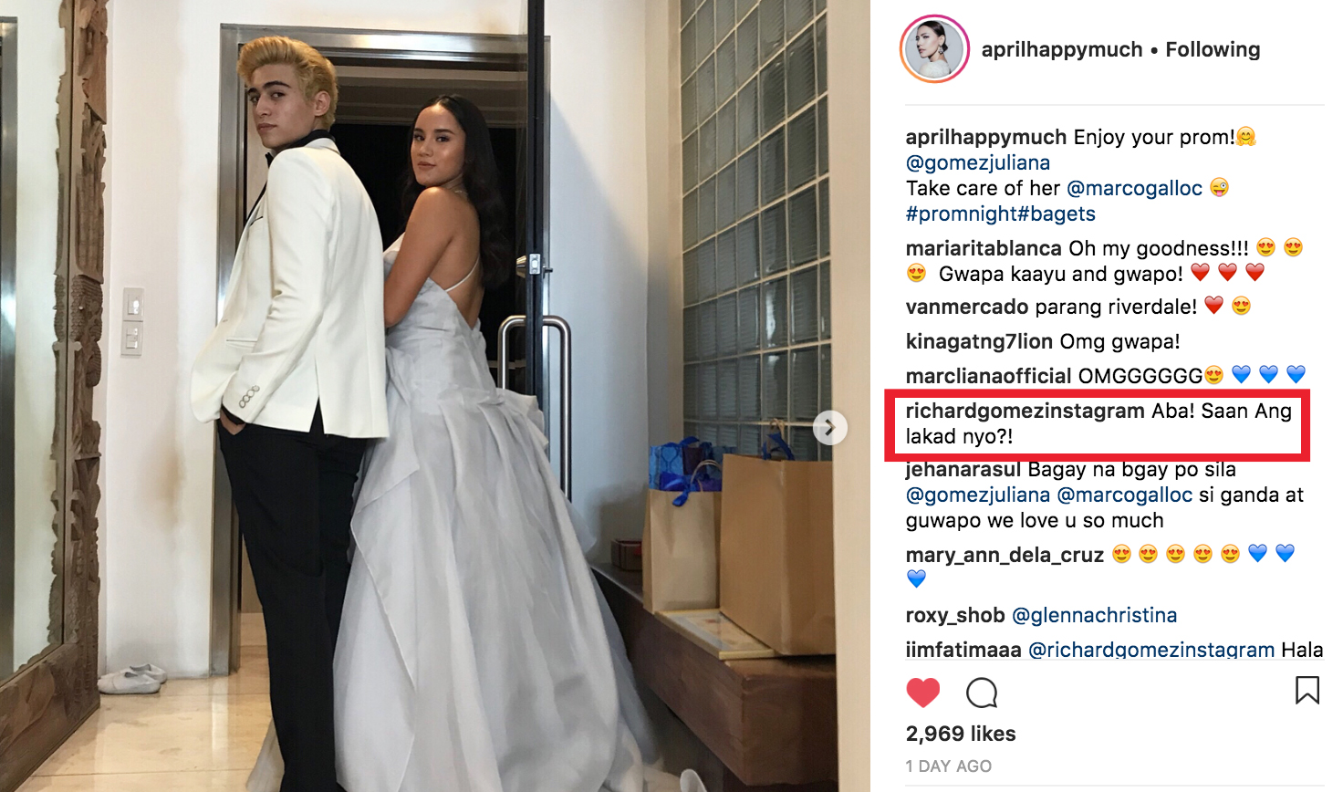 Random note: Juliana’s dad Richard Gomez left a funny comment in an IG post by April Tanhueco. (Yes, guys, Richard and Lucy Torres’ daughter is now 17 years old and attending a prom!)