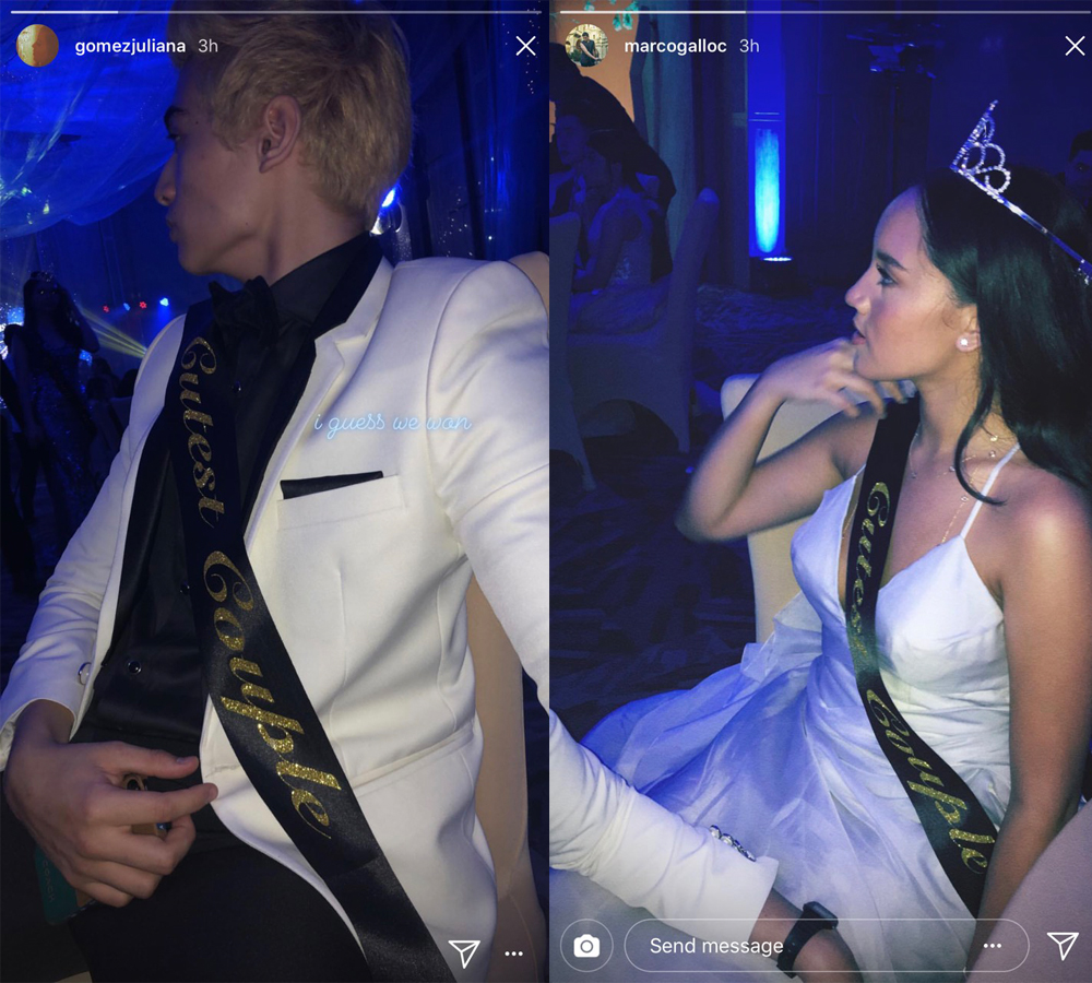 Fans went abuzz online as photos of PBB alumnus Marco Gallo and celebrity daughter Juliana Gomez going to a prom together surfaced on Instagram last Saturday. Based on the captions, Marco is Juliana’s date to her school prom. Instagram stories later revealed they were given the Cutest Couple award that night (check out their sashes!). In another photo, Juliana is also seen wearing a crown and another sash that bears the text Prom Princess.