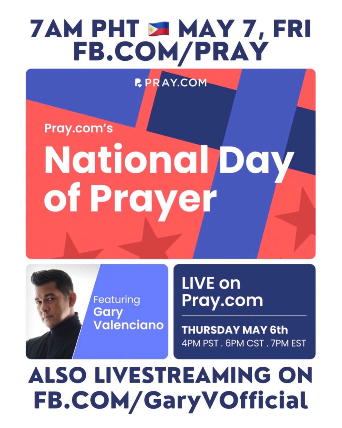 This coming Friday, May 7, at 7:00 a.m. (Philippine Time), Gary is invited to participate in America’s National Day Of Prayer event that will stream live on Pray.com. He will offer prayers as well as inspiration through his music as he is set to perform “Make Us Whole Again” for the very first time before a live global audience.