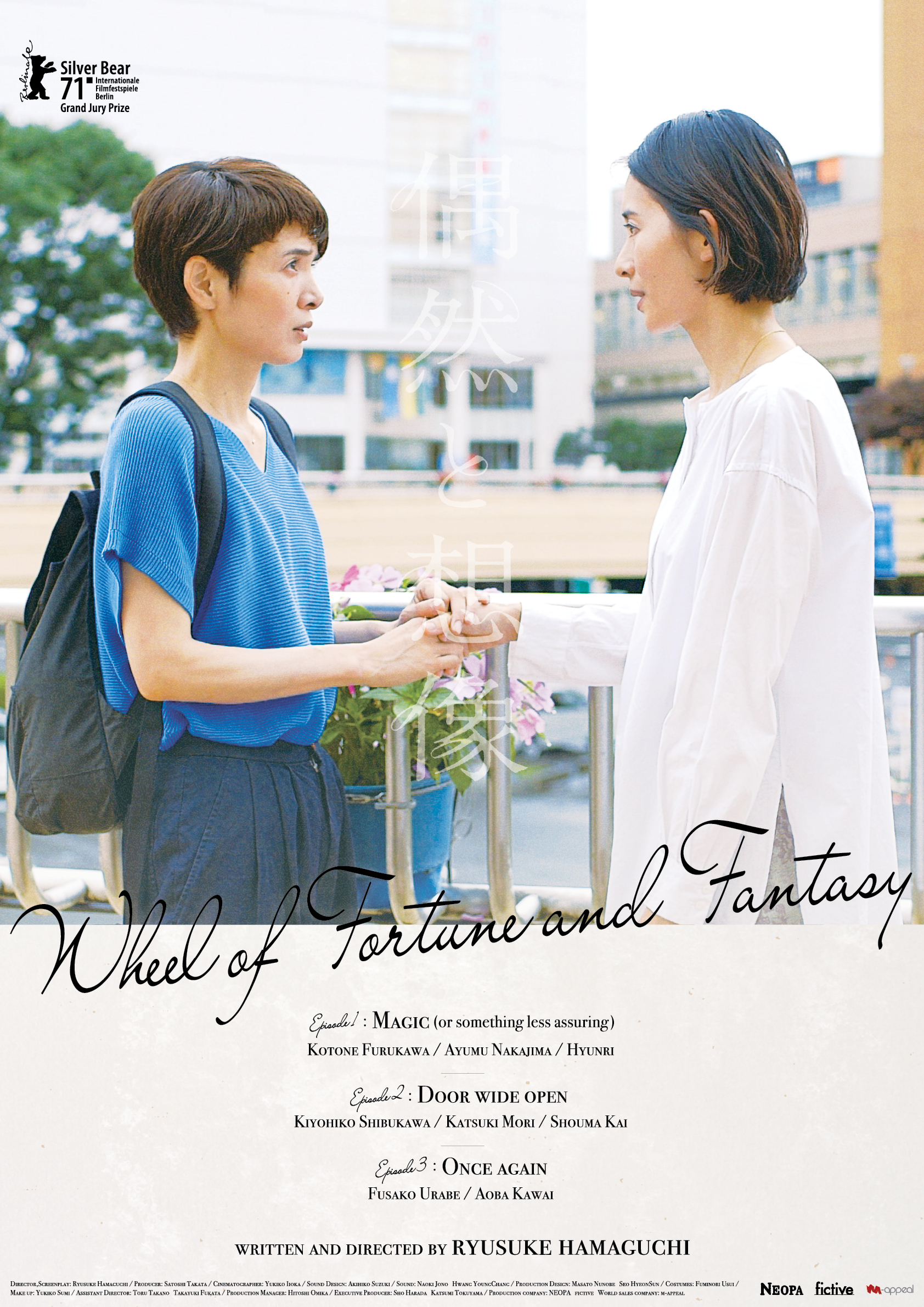 Wheel of Fortune And Fantasy is an anthology film covering the themes of love and betrayal. Told in three segments, the film explores an unexpected love triangle, a failed seduction trap and an encounter that results from a misunderstanding. It depicts three female characters and traces the trajectories between their choices and regrets.