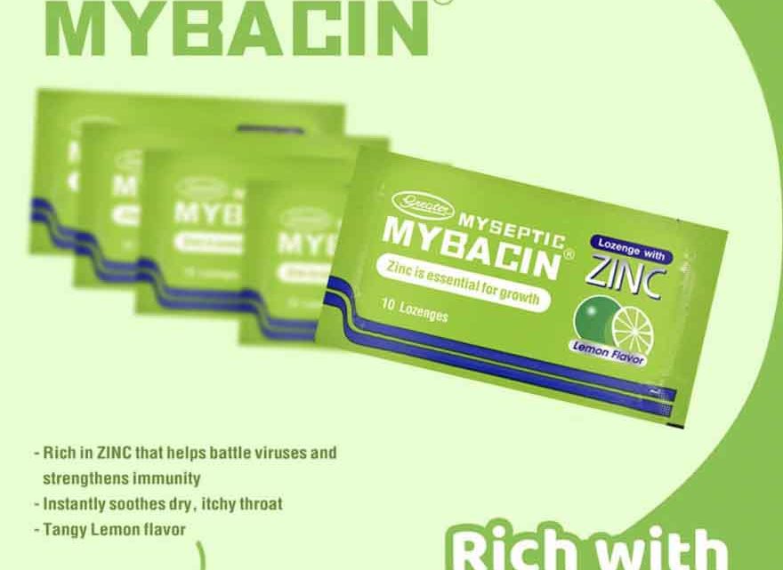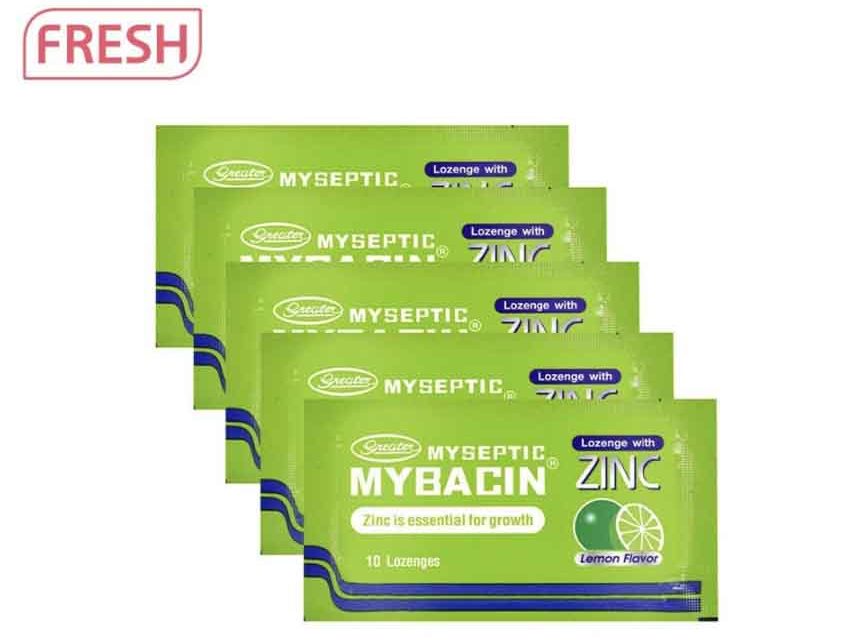 - Myseptic Mybacin Lozenges: Daily vitamins that boost immune system. Helps relieve sore throat, provide refreshing sensation. It has Zinc that helps improve growth.