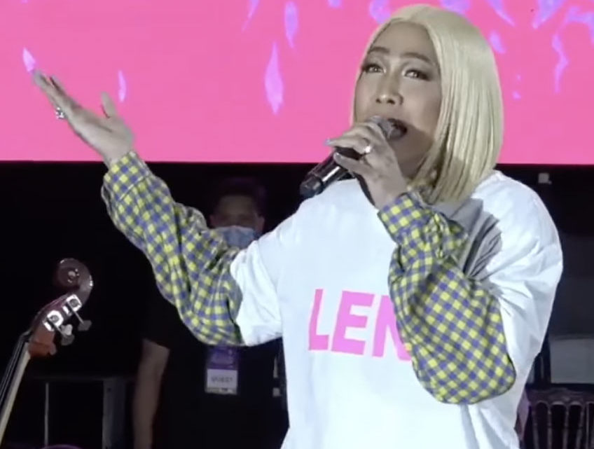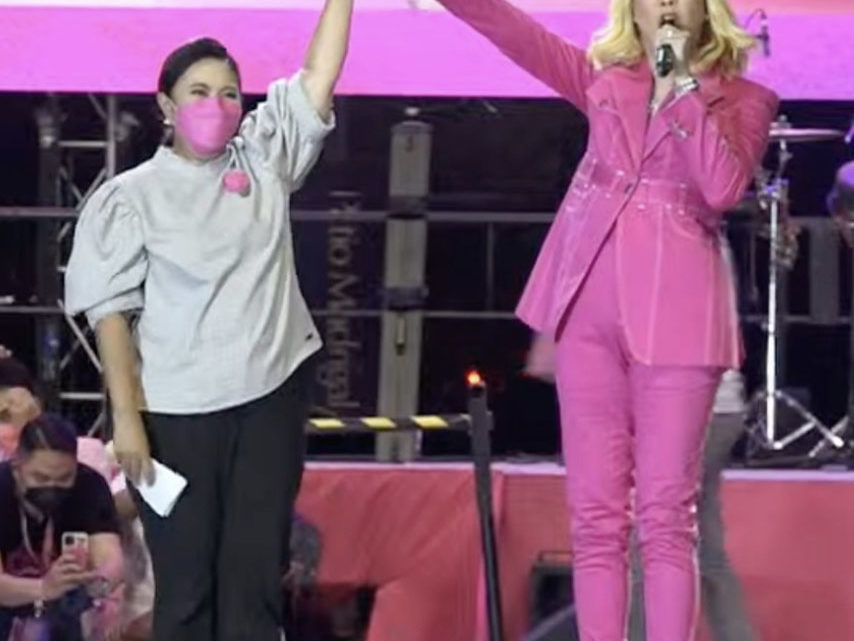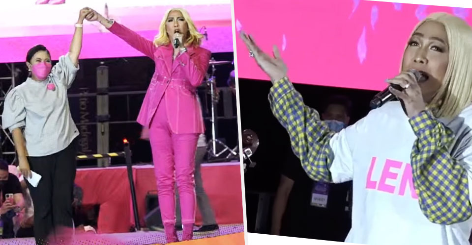 After a grand performance wearing fuchsia pink from head to foot, Vice formally endorsed Vice-President Leni Robredo for president and raised her hand onstage.