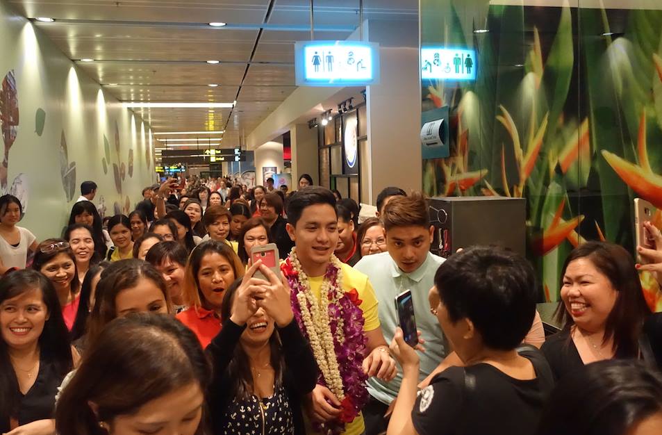 Known to be typically peaceful and orderly on an ordinary day, the scene and mood at the Changi Airport suddenly changed upon Alden Richards’ arrival on July 23, 2016 in Singapore. Supporters (some were even kids aged seven and nine years old) were ready to go wild while waiting at the arrival hall — running in all corners of the airport with their banners, garlands, and selfie-ready mobile phones for this special meeting with the one and only Pambansang Bae.