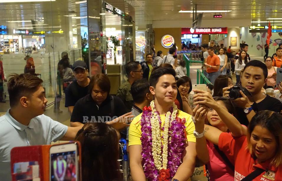 When Alden, clad in a cute yellow t-shirt, all of a sudden appeared to pick up his bag at the conveyor belt at around 11 p.m., fans started shrieking from a distance — separated only by a mirror glass which was a hundred meters away from the Bae.