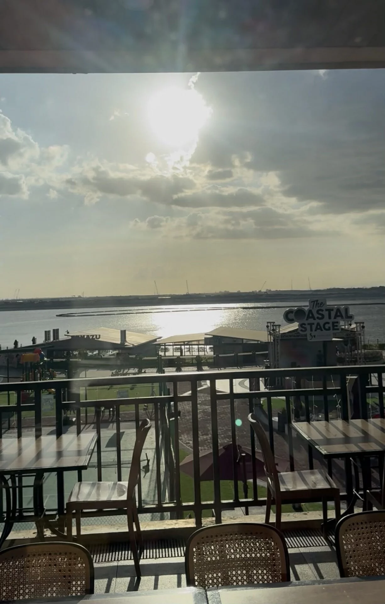 At that hour, the complex was quiet and breezy. The sun dipped low, the bay shimmered, and live music setups were being prepared at what the night would soon become.