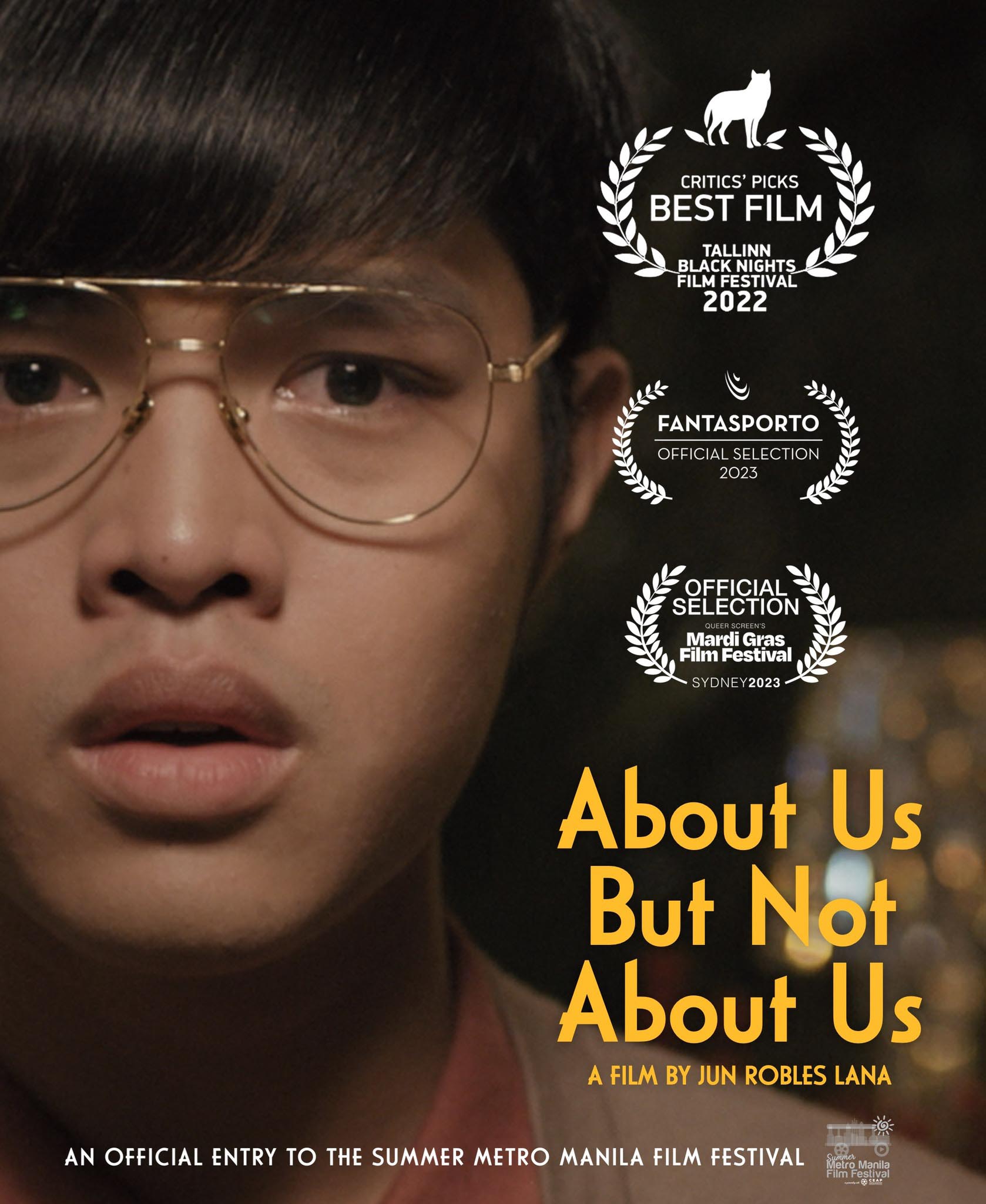 About Us But Not About Us opens April 8 in cinemas nationwide, an official entry to the first Summer Metro Manila Film Festival. It is a production of Octobertrain Films, The IdeaFirst Company and Quantum Films.