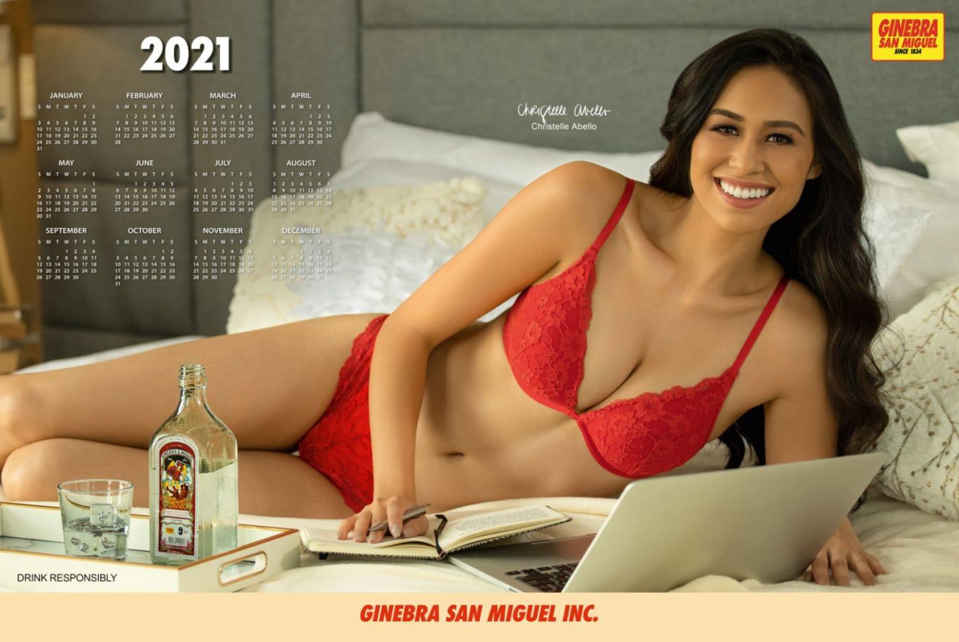 “More than just a pretty face, our Ginebra San Miguel Calendar Girl for 2021 definitely personifies our latest campaign ‘One Ginebra Nation.’ We were not only charmed by her intelligence, but also by her optimism, her courage, her never-say-die spirit, her heart for others, and love for her kababayan. We feel that she best represents the brand and we are very happy to welcome Christelle to our Ginebra San Miguel family,” relates Ginebra San Miguel Inc. (GSMI) Sales and Marketing manager Allan Mercado.