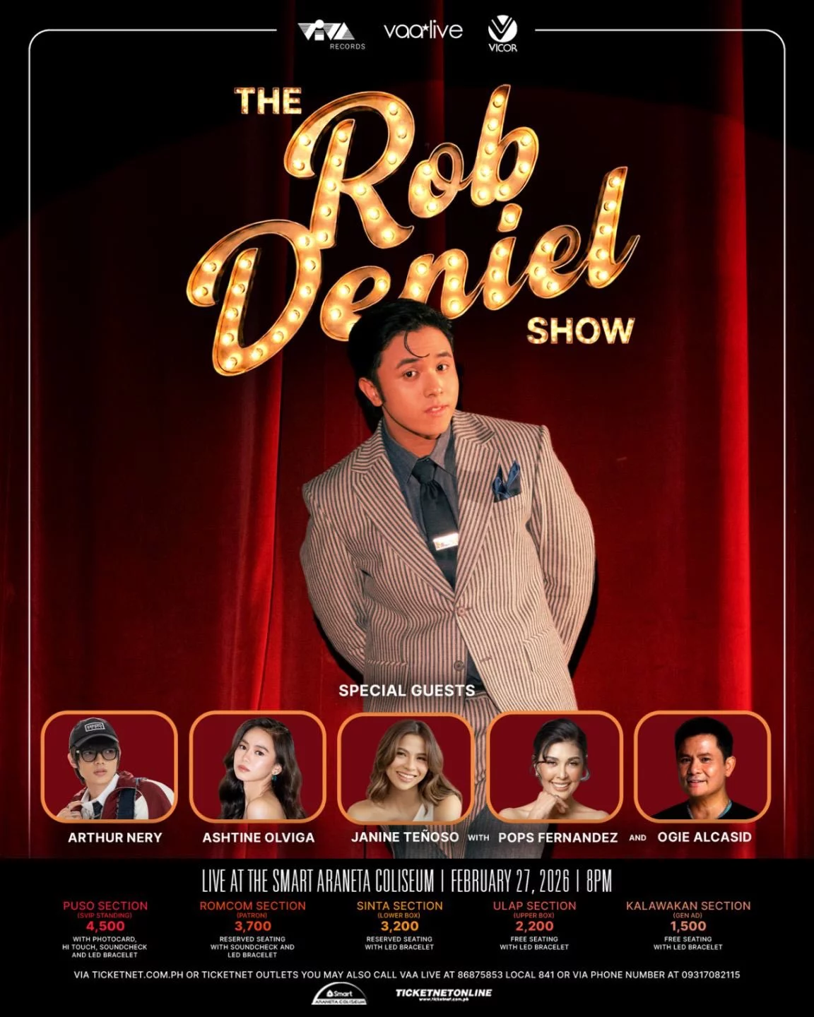 As Rob Deniel steps onto one of the country’s most iconic stages next year, he’s making history in his young career. For fans, one thing is certain: this is a concert they will not want to miss. Special guests at The Rob Deniel Show have already been announced, including Arthur Nery, Ashtine Olviga, Janine Teñoso, along with Ms. Pops Fernandez and Mr. Ogie Alcasid.