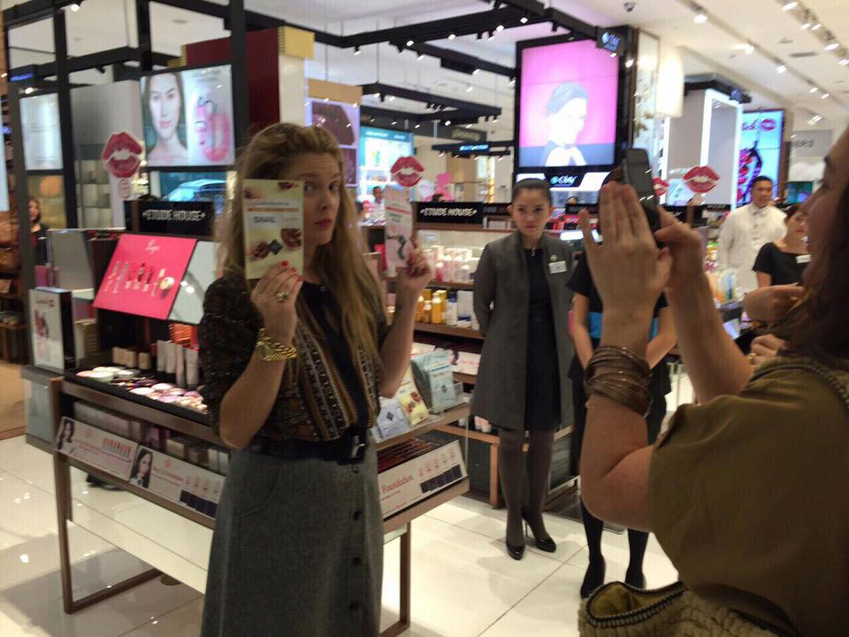 Charlie’s Angel, Drew Barrymore, was spotted at SM Makati today via the shopping mall’s Facebook page. Drew is is currently in Manila to promote her new cosmetic product line, Flower Beauty by Drew Barrymore.