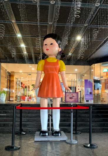 Netflix series Squid Game has an amazing ensemble cast and imagery. There’s one key figure that particularly stands out: the huge scary doll that signals players to stop and go during the “Red Light, Green Light” game in the first episode. The freaky doll has recently been spotted in the Philippines… Are you ready to play?