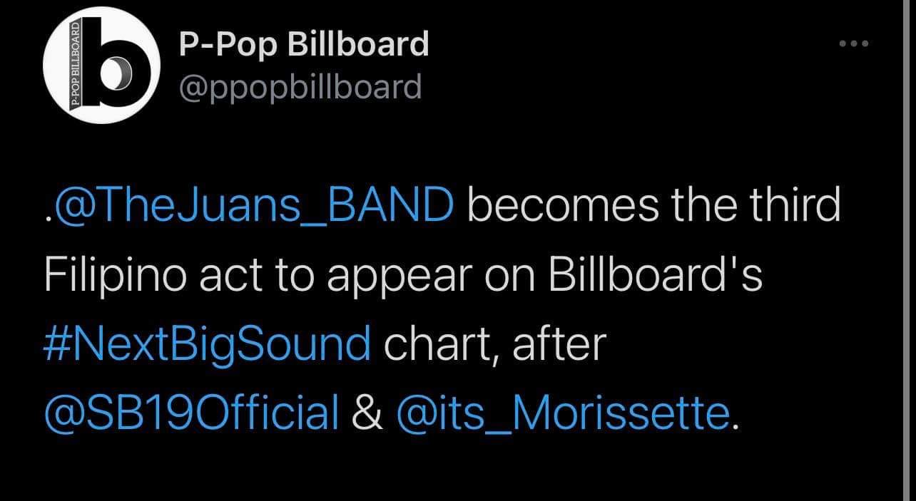 On its Twitter account, P-Pop Billboard (@ppopbillboard) wrote: “@TheJuans band debut at No. 9 on this week’s #NextBigSound chart.”