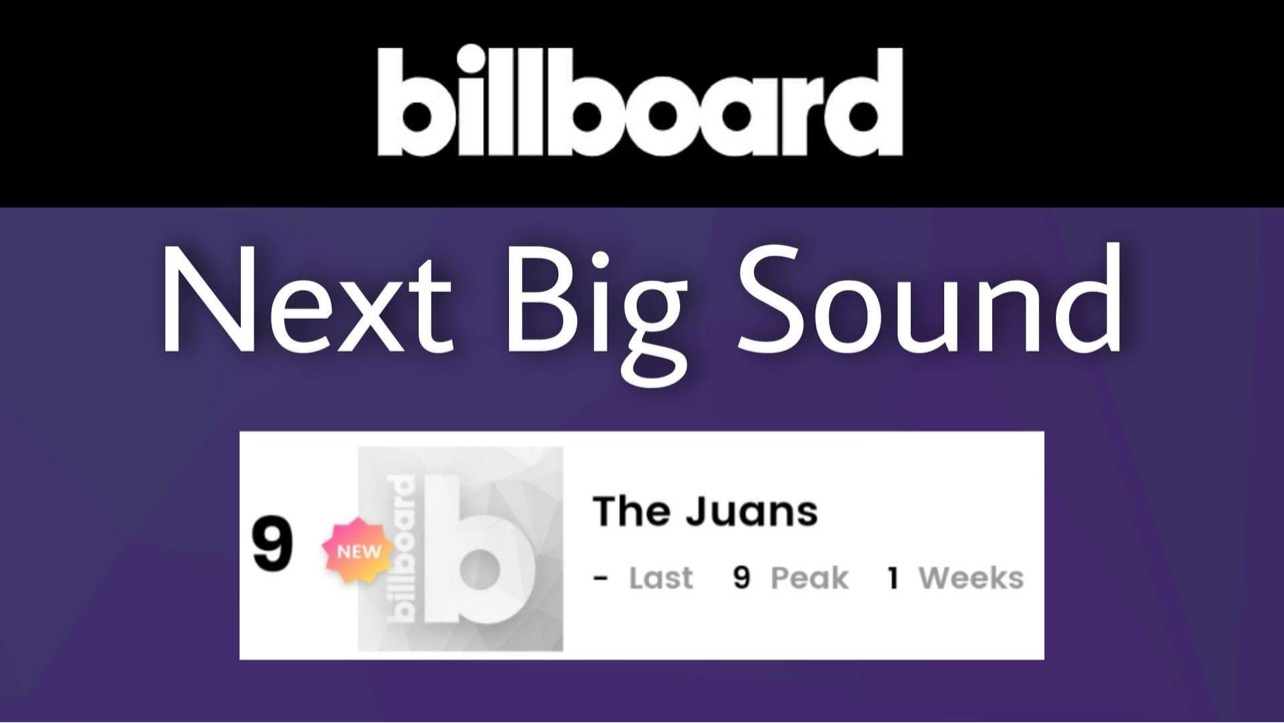 The Juans made their chart debut at Billboard’s Next Big Sound chart, making it to the Top Ten at the number nine spot. The Next Big Sound tracks popular music artists on social media and streaming platforms, focusing on remarkable acts on regions other than the US.