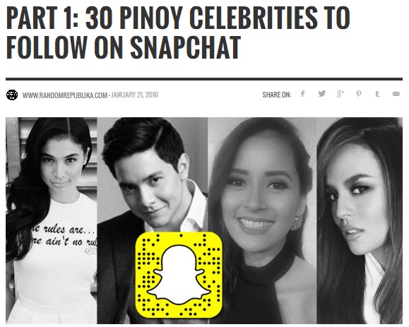 #3 -Part 2: 30 Pinoy Celebrities to Follow on Snapchat