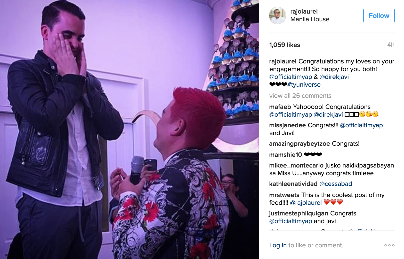 In an Instagram post of fashion designer Rajo Laurel on January 20, 2018 (which was later reposted by his friends, Isabelle Daza and Joey Mead) on January 20, 2017, Rajo shared this momentous event in Tim and Javi’s lives.
