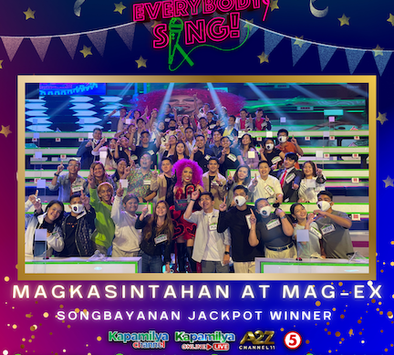 For the finale episode, the songbayanan of exes and lovers won the P1 million jackpot prize. Although they struggled to identify the two remaining songs during the “Everybody GuesSing?” round, they successfully finished the game with 27 seconds to spare.