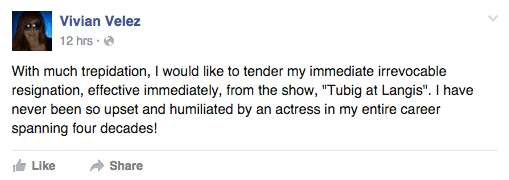 Here’s Vivian Velez’s Facebook post: