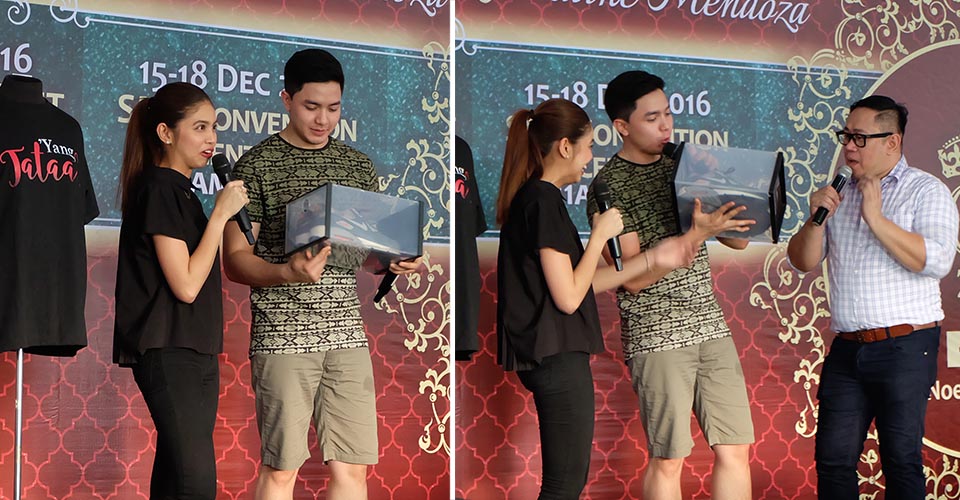 Kapuso loveteam Alden Richards and Maine Mendoza a.k.a. AlDub auctioned off their personal items at the GMA Kapuso Celebrity Ukay-Ukay (Noel Bazaar 2016, World Trade Center). While Maine had her long-sleeved top sold at Php12,500, Alden auctioned off his pair of pre-owned Nike Air Max rubber shoes with a final bidding of US$300. San Francisco-based fans were the buyers of the shoes and it was shared that they took a two-week leave from their work abroad to meet AlDub in the Philippines.